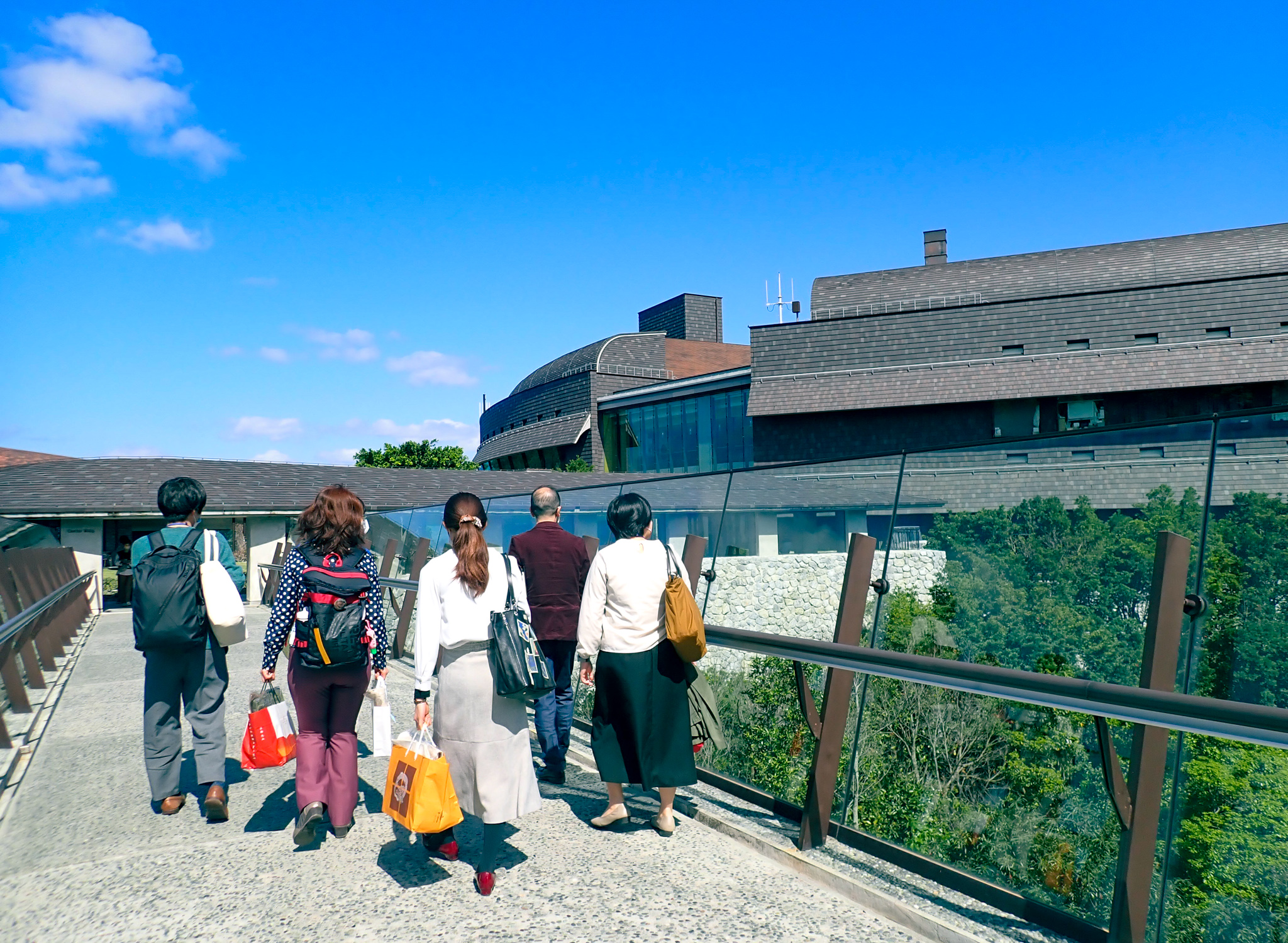 開催2日目(2/15)は、PCR検査結果を各自確認、往訪者全員の陰性が確認された後にOISTへ入構しました。カフェテリアで全員一緒に昼食をとった後、”Fellow-Go-Round”として各フェローがOIST研究者の研究室を直接訪問し、対面で個別交流を実施しました。交流後はOISTのキャンパス内を散策、自然と調和した施設を見学しました。
