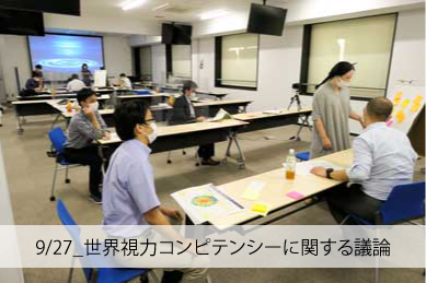 両日ともに8月末のオリエンテーションに続き、ガイダンスとして1)L-INSIGHTフォリオの使い方の説明、2)年間イベント計画及び変更案に関するフェローの希望収集、3)世界視力コンピテンシーに関する議論を行いました。